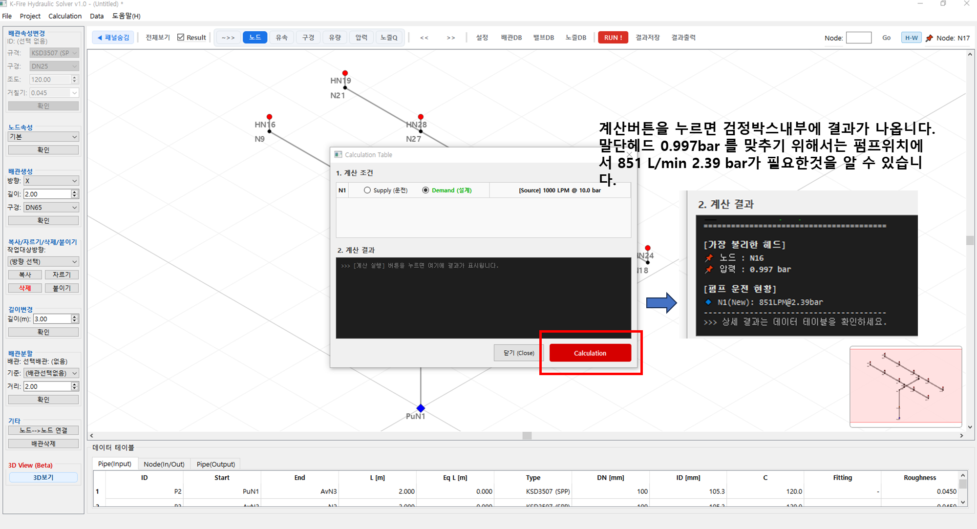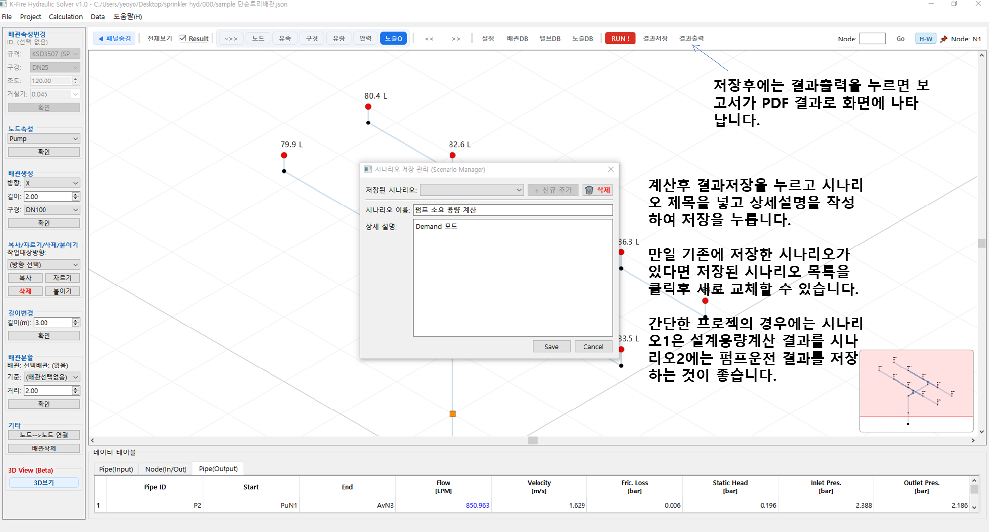 K-Fire Hydraulic Solver 3. 단순 트리배관/보고서출력 등 본문