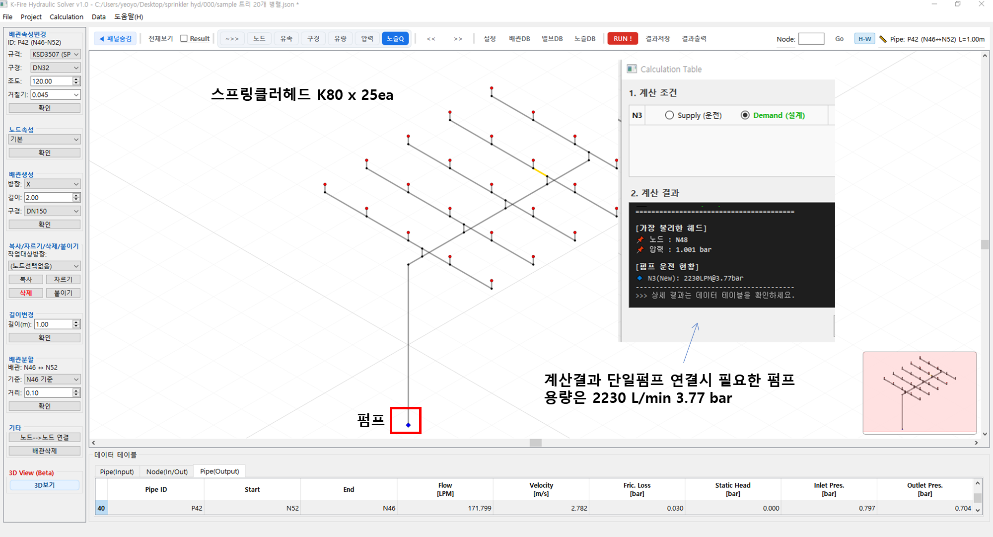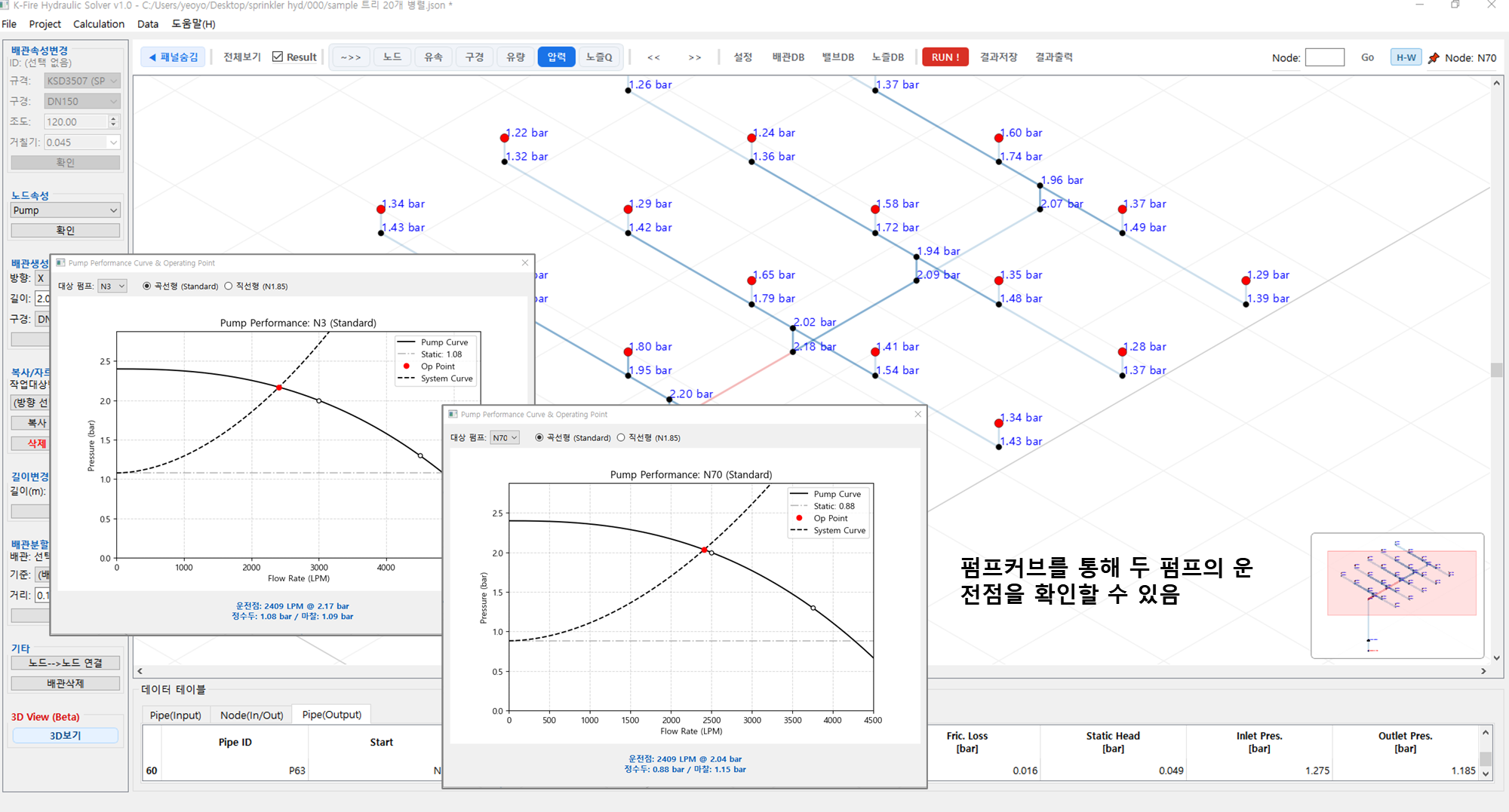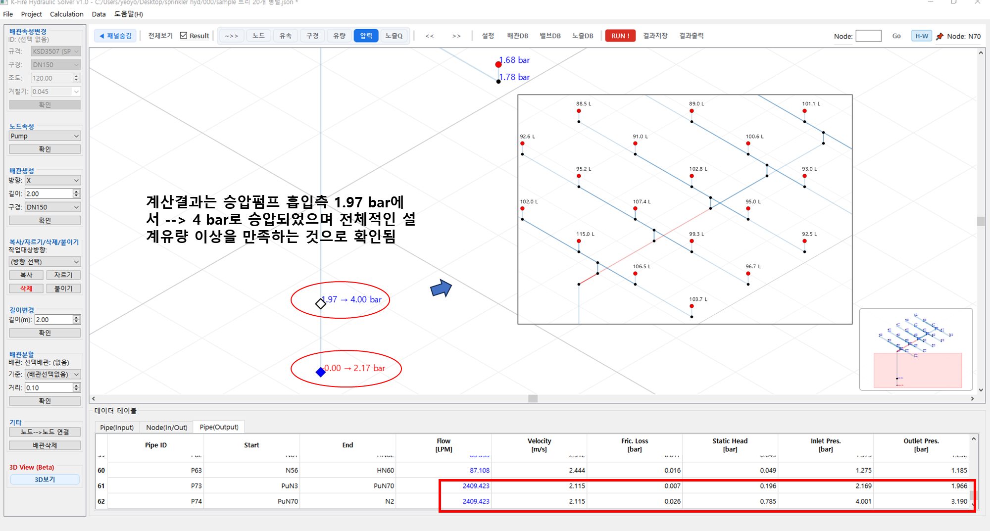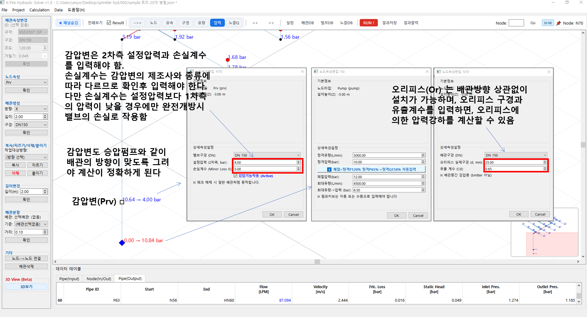 K-Fire Hydraulic Solver 5. 펌프직렬, 감압변, 오리피스 설치 본문